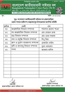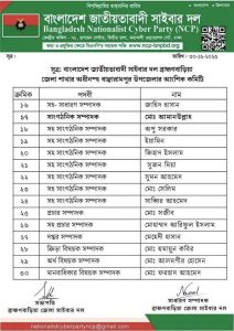 গত ৩০ ডিসেম্বর, ২০২৫ তারিখে ব্রাহ্মণবাড়িয়া জেলা সাইবার দলের সভাপতি ও সাধারণ সম্পাদকের যৌথ স্বাক্ষরে এই কমিটি অনুমোদন দেওয়া হয়।