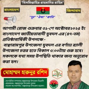 বাঞ্ছারামপুর উপজেলা যুবদলের উদ্যোগে অনুষ্ঠিত হতে যাচ্ছে